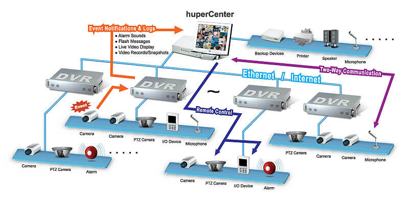 Note:*huperCenter systems can be chained to manage more remote cameras.
